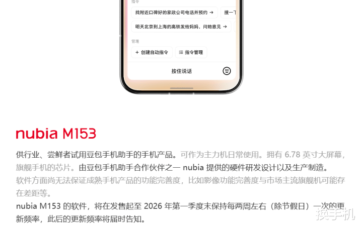 努比亚 M153 的软件,将在发售起至 2026 年第一季度末保持每两周左右(除节假日)一次的更新频率。