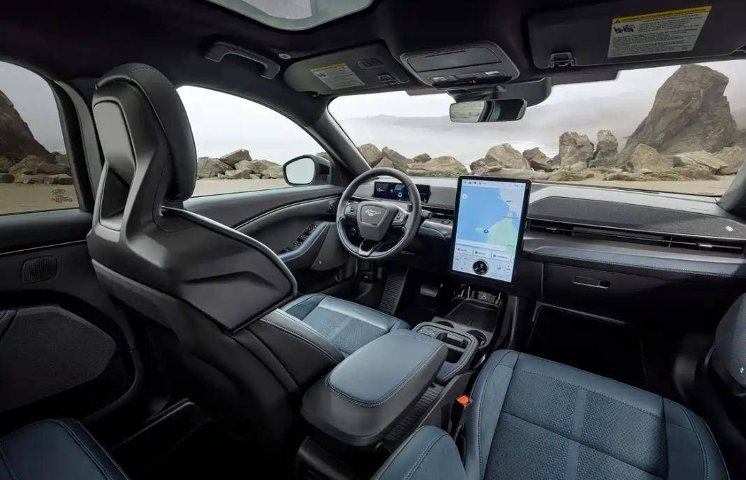 外观方面,特别版车型采用了全新设计的立体感格栅,中央镶嵌蓝色野马标识,彰显独特身份。前发动机盖上新增专属拉花装饰,以落日余晖为灵感,并配有California Special标识。轮圈采用全新样式,细节处融入GT/CS(California Special缩写)标识,搭配Brembo高性能卡钳,运动感十足。车门位置设有Mach-E 4蓝色标识,尾标GT内部同样嵌入California Special字样,进一步强化辨识度。